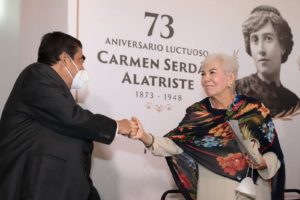 Agregó que también grabó su nombre en la historia de nuestro país y se constituyó en paradigma de la mujer mexicana por su valentía, abnegación y generosidad, además de que siempre fue humilde, ya que nunca buscó cargos públicos y el poder o la riqueza nunca fueron su meta. Por lo contrario, en la época postrevolucionaria, Carmen Serdán Alatriste fue gestora incansable ante gobernadores, presidentes de la República en favor de pueblos y personas que clamaban justicia. Por ello, dijo, su memoria vivirá mientras exista México.