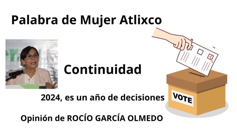 Palabra de Mujer Atlixco Continuidad 2024, es un año de decisiones. Opinión de ROCÍO GARCÍA OLMEDO Decidiremos el rumbo que queremos dar a nuestro país. Decidiremos por una mujer que por primera vez en la historia nos gobernará desde la…