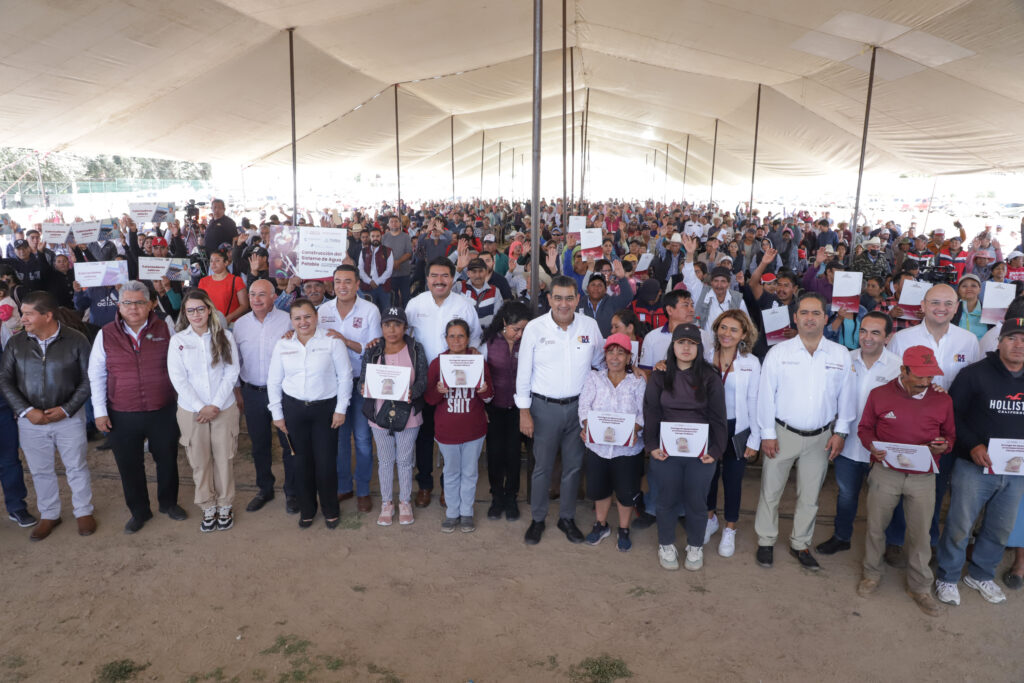 En esta gira de trabajo, en la que el mandatario reiteró el llamado a la sociedad a hacer comunidad, también otorgó una constancia de la construcción del sistema de agua potable de la localidad de Guadalupe Victoria, por 26.5 millones de pesos; y distribuyó 29 mil 050 acciones para el bienestar de las familias poblanas (producto lácteo y calentadores solares) por 2.3 millones de pesos.