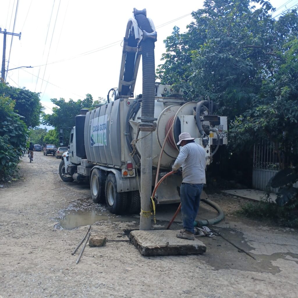 Del 14 al 24 de octubre, cuatro brigadas especializadas de la Gerencia de Drenaje, equipadas con unidades hidroneumáticas —equipos que combinan succión y presión de agua para eliminar obstrucciones, retirar residuos y lodos y mantener las redes en buen estado— se trasladaron a las zonas afectadas para apoyar con la limpieza y desazolve de la red de drenaje, sistemas de desagüe, alcantarillado, tuberías, pozos de visita, fosas sépticas, instalaciones sanitarias y viviendas dañadas por las lluvias.
