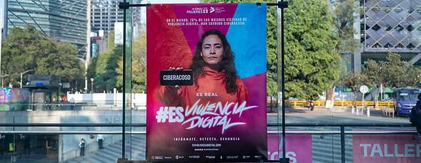 Cartel de la campaña “Es real #EsViolenciaDigital” en la Ciudad de México, México. Noviembre 2025.
