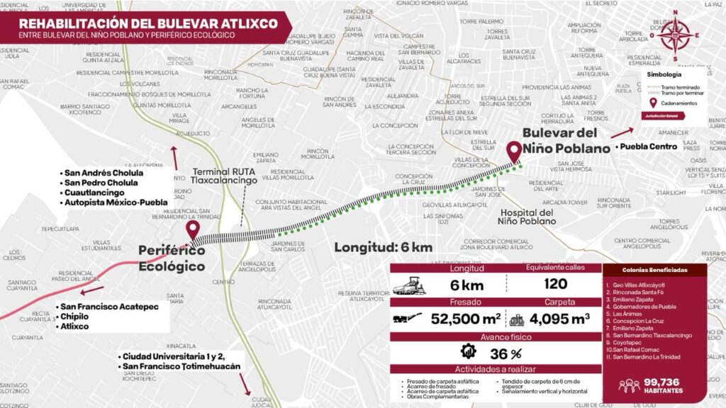 Estas obras se van encadenando a las más de 70 que se realizan al interior del estado, en mantenimiento de carreteras, caminos, puentes e incluyendo los circuitos que comunican a la Mixteca y a las Sierras Norte, Negra y Nororiental, lo que traerá mejora en la movilidad rural en su interconexión con la zona metropolitana.
