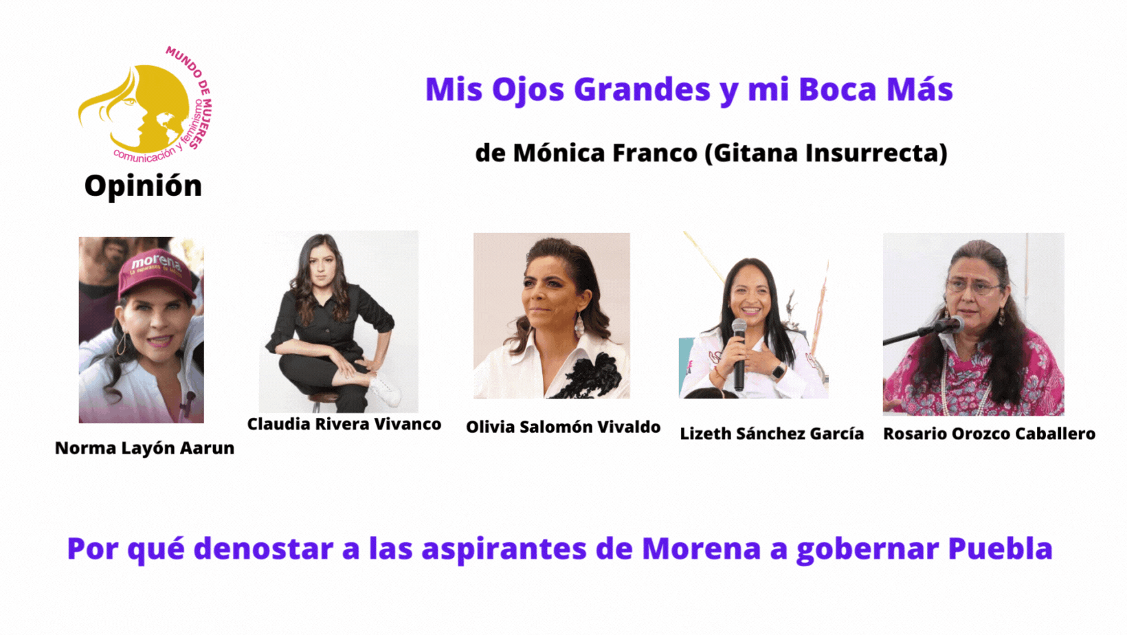 Olivia Salomón Vivaldo, Lizeth Sánchez García, Claudia Rivera Vivanco, Norma Layón Aarun y Rosario Orozco Caballero enfrentan un mes complicado tras anunciar que intentarán ser la candidata de Morena a la gubernatura de Puebla.