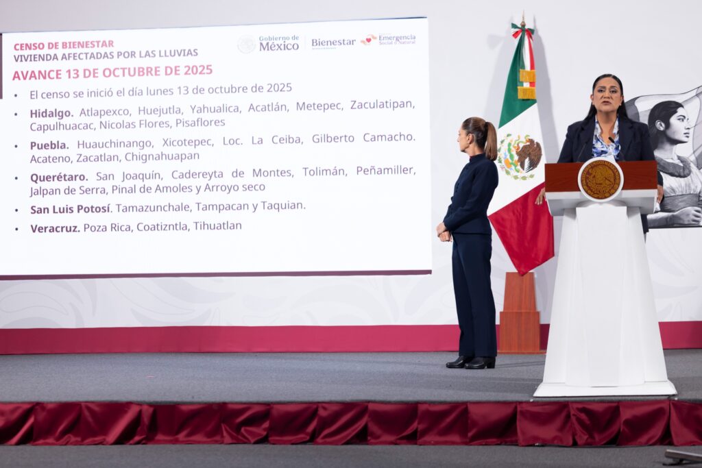 La secretaria del Bienestar, Ariadna Montiel Reyes, informó que se han censado 4 mil 178 viviendas en 30 comunidades de los cinco estados afectados. Además, anunció que en coordinación con la Secretaría de Trabajo y Previsión Social (STPS), se abrieron 5 mil espacios para que se incorporen a las tareas de limpieza beneficiarios del programa Jóvenes Construyendo el Futuro.