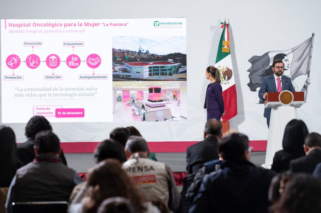 El director general del IMSS Bienestar, Alejandro Svarch Pérez, informó que el nuevo Hospital Oncológico para la Mujer “La Pastora” de la Ciudad de México, que se inaugurará en diciembre, tiene una inversión de más de 300 mdp, contará con dos mastógrafos que permitirá atender a más de 6 mil mujeres al año por equipo, mientras que la Unidad robótica de análisis de patología va a reducir los tiempos de confirmación a menos de la mitad, haciendo hasta mil 200 pruebas por turno. Detalló que este nuevo hospital se convertirá en la primera unidad oncológica integral, gratuita y universal bajo conducción del IMSS Bienestar que dará atención desde la prevención, el diagnóstico, el tratamiento y el acompañamiento.