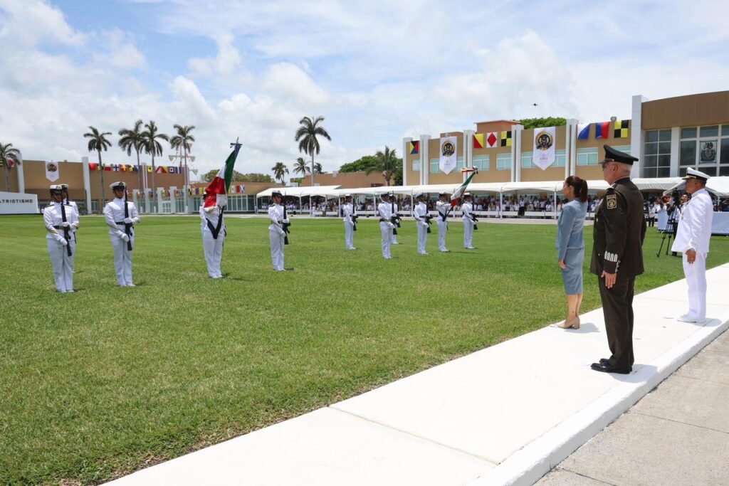 La Jefa del Ejecutivo Federal encabezó la Ceremonia de Jura de Bandera de 419 cadetes de Primer Año de la Heroica Escuela Naval Militar y del Centro de Estudios Navales en Ciencias de la Salud